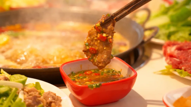 還能依據個人口味撒上花生碎、香菜等配料,調制成千人千碟的蘸料,接下來就盡情涮火鍋吧。