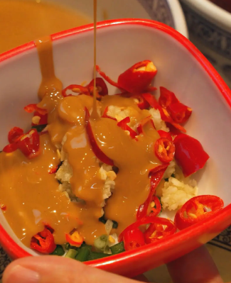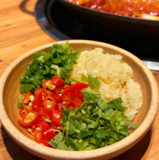 ?配方:小米辣+蒜泥+蔥花+香菜+芝麻油